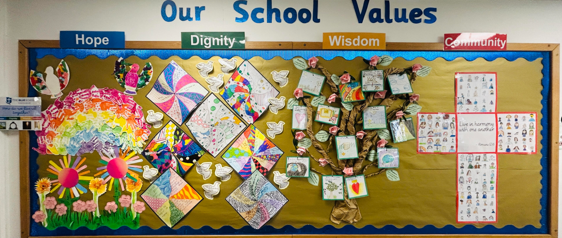 The Blue School is a community flourishing through wisdom, hope and dignity giving thanks to God in all that we do.